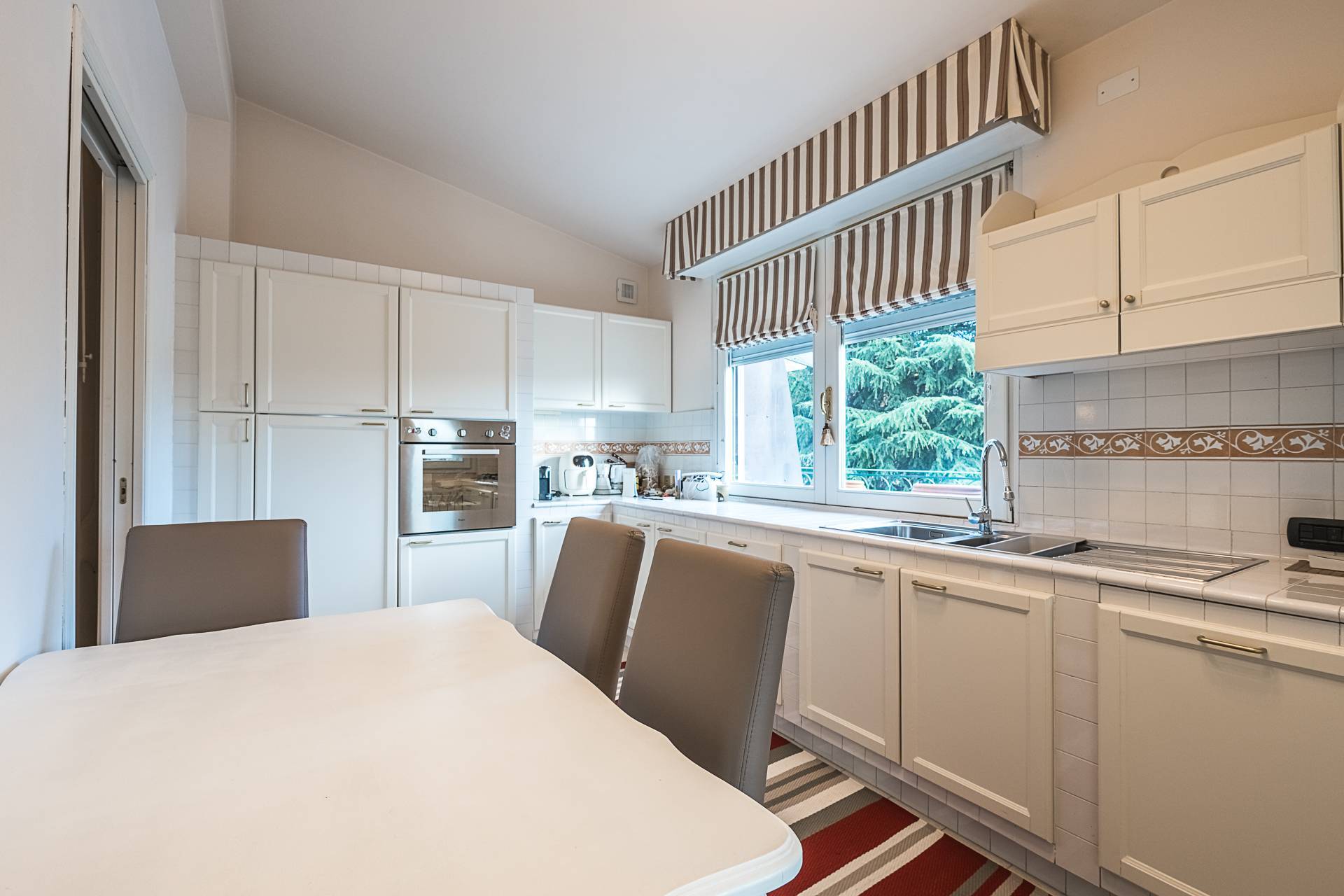 Zona Ronchi Verdi, in palazzina signorile del 1991, Attico al terzo ed ultimo piano, unico appartamento del piano, servito da ascensore con arrivo diretto in casa. Doppi ingressi, sala, tre camere, cucina abitabile con grazioso locale disimpegno verso due terrazzini, doppi servizi, lavanderia, cantina.Tripla esposizione con tre terrazzini, vista panoramica, recentemente ristrutturato, pavimenti in parquet, climatizzatore, riscaldamento autonomo.. Al piano interrato un box auto doppio con apertura automatizzata, servito dall'ascensore, prezzo € 30.000,00.